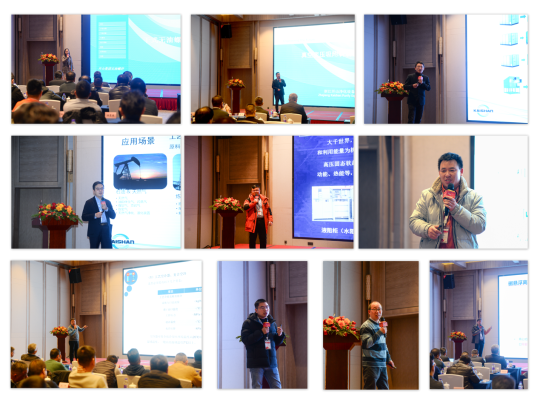 本次會議圍繞著“逐夢聚勢”的主題,來自集團內(nèi)的多位專家紛紛上臺發(fā)言介紹無油螺桿機、氫壓縮機、流體機械、工業(yè)/商業(yè)冷凍、智能高壓軟啟動、高效水冷卻系統(tǒng)等產(chǎn)品,全方位、多角度對代理商/合作伙伴進行了一次專業(yè)性的培訓(xùn)。與此同時,集團無油機產(chǎn)品部門,開泰克(上海)流體機械有限公司以及其他產(chǎn)品部門,開山壓縮機服務(wù)(上海)有限公司分別對他們各自的產(chǎn)品及服務(wù)進行了詳細的講解。